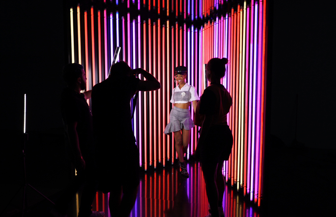 Registros de janeiro de 2020, qdo fomos convidados a desenvolver projeto luminotécnico e programação dos dispositivos de luz inspirados na vinheta da Netflix para o festival @tudumnetflix . Nesse espaço gerador de imagens foram realizados fotos e vídeos com artistes/comunicadores que passaram pelo festival, feitos pelo coletivo @doma02.