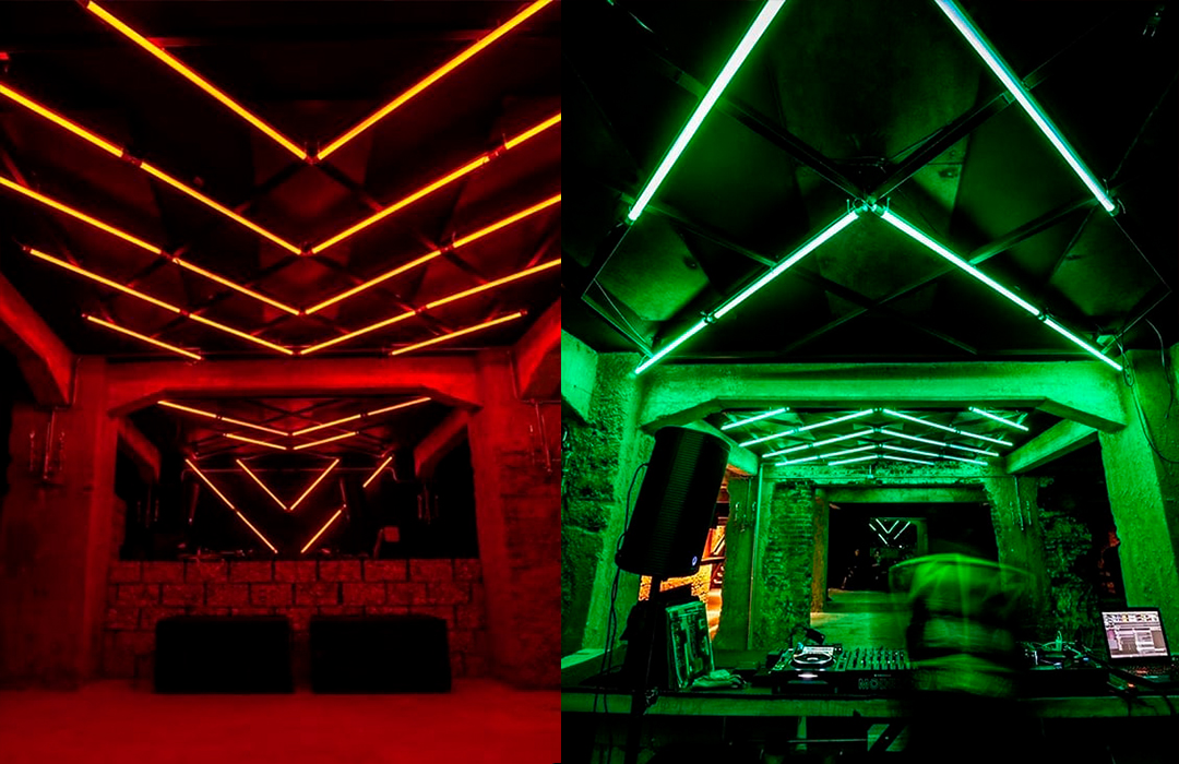 O projeto de luz para o club Tango em Asunción (PY) partiu do desenho de uma estrutura, construída em serralheria no teto do club, que pudesse servir de apoio a diversos tipos de desenho de luz. A cada temporada as luzes da pista, construída no porão de um hotel no centro da cidade, tomavam diferentes formas, tornando a experiência diferente a cada visita do público