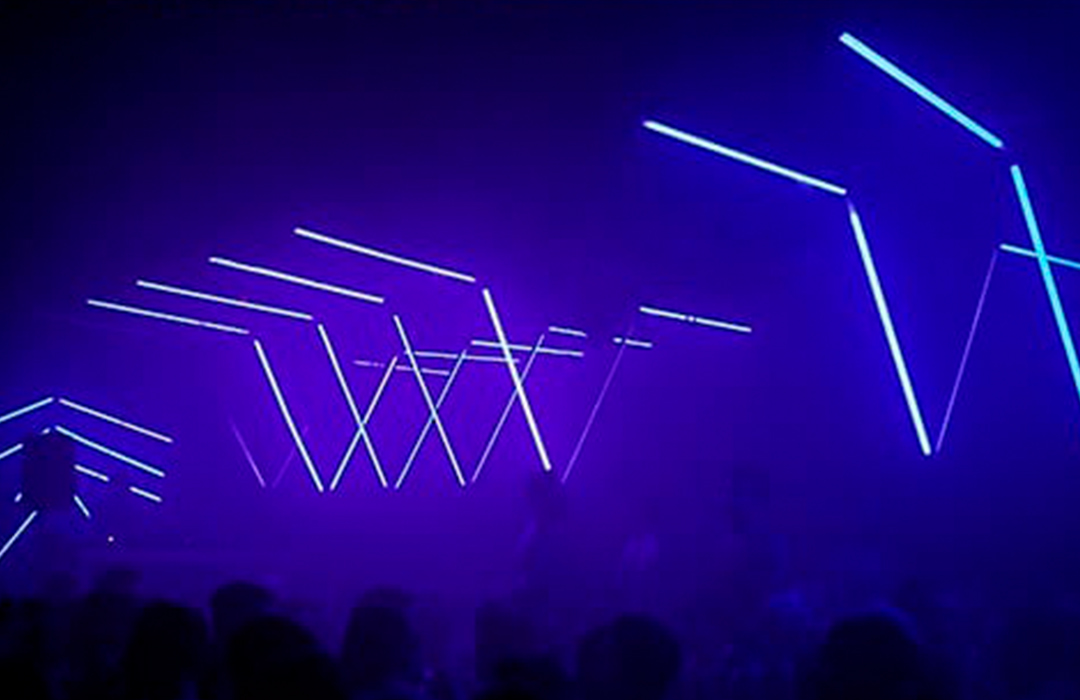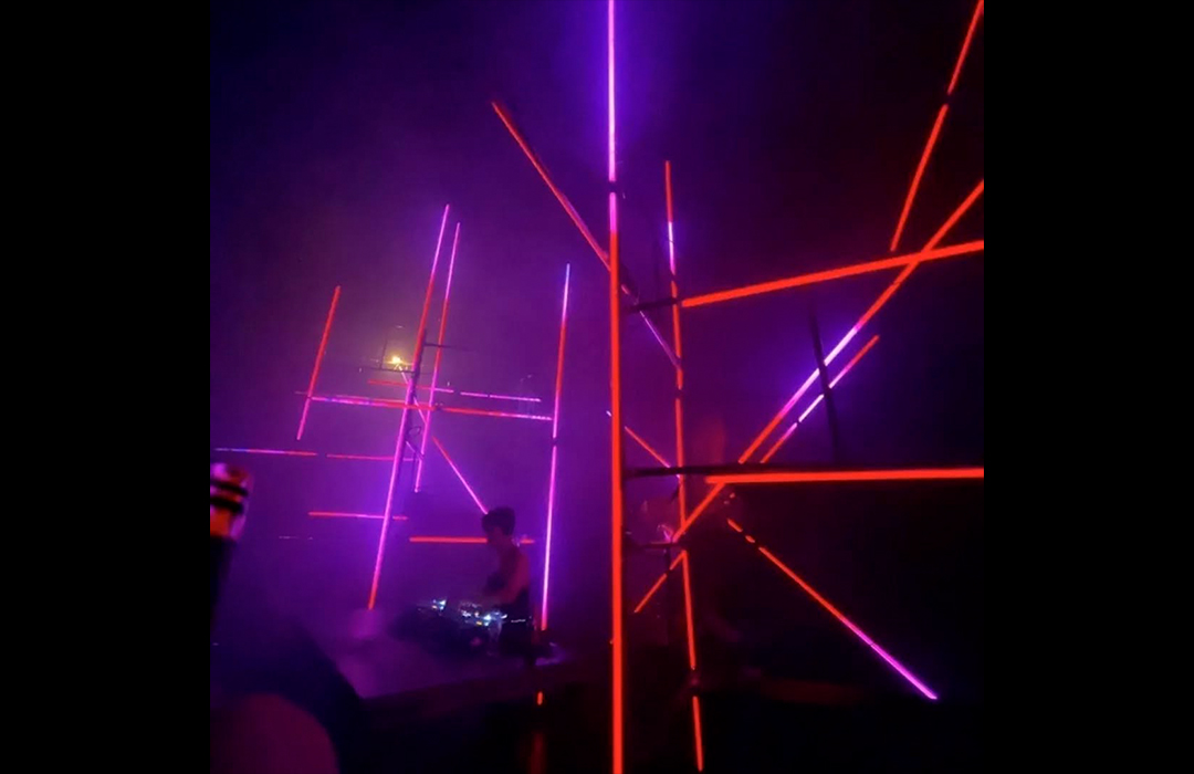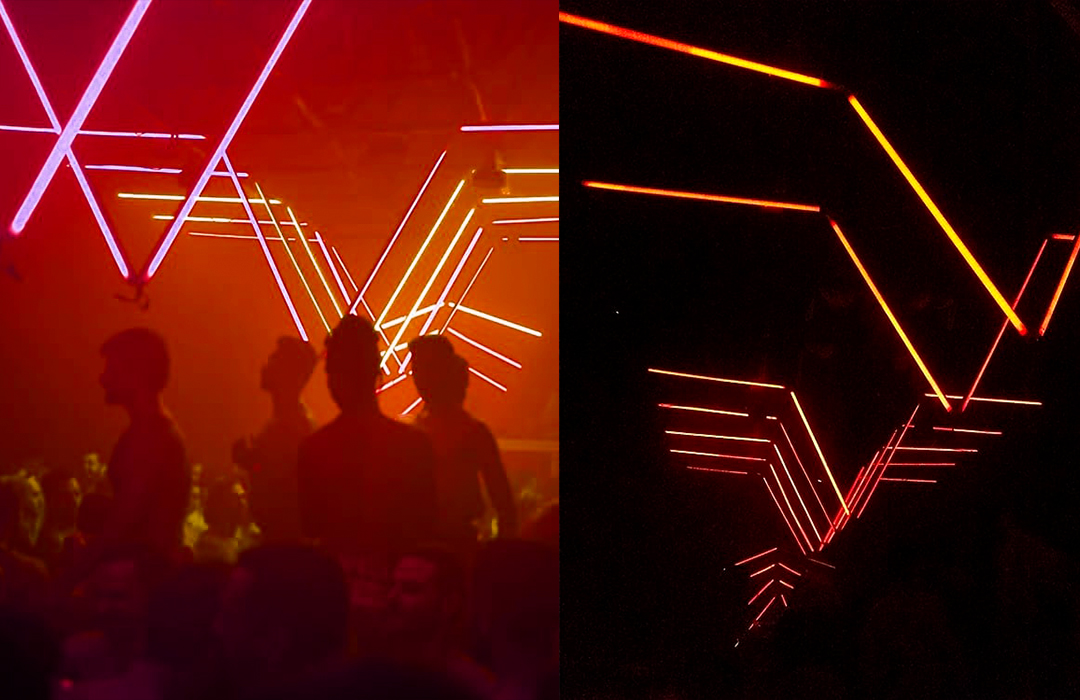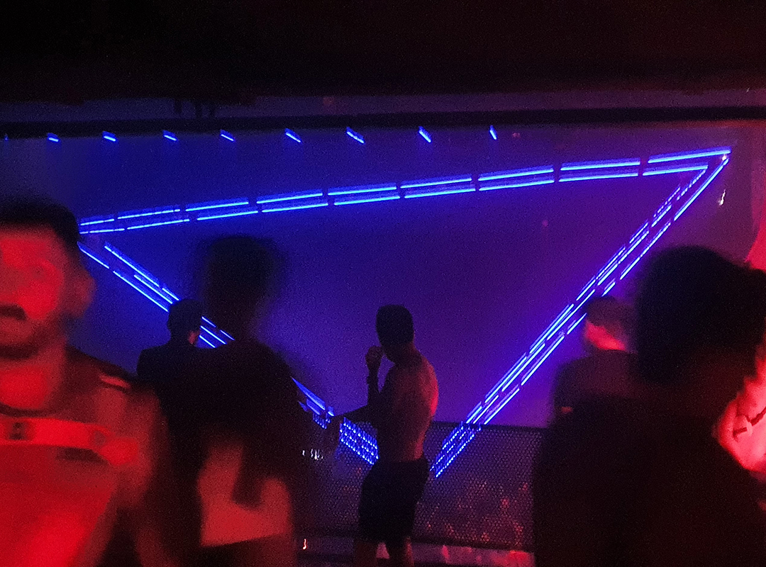 Durante a residência da festa nesse teatro icônico do Bexiga, procuramos explorar de diferentes maneiras o espaço para sempre trazer o inesperado que faz com que o público reimagine o ambiente à sua volta. O pé-direito de 20m de altura, aliado à sua estrutura de varas cênicas de alturas variáveis nos permitiu instalar diversas estruturas suspensas, que eram movimentadas durante a festa e, ora estavam a uma altura de 4m, ora a 15m. Nas imagens, diferentes momentos e sensações que projetamos nesse ‘cubo preto’