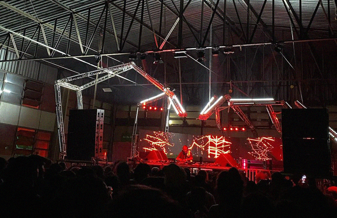 Na segunda pista, estruturas semelhantes a garras com ribaltas laser se debruçavam sobre um painel de led e sobre a cabine para DJs e performers. No palco 3, uma matriz de spots de luz compunha o horizonte em contraluz. Para palco 4, fizemos referência às nossas origens numa reinterpretação do símbolo da festa em um desenho contraluz apenas com andaimes e lâmpadas tubulares.