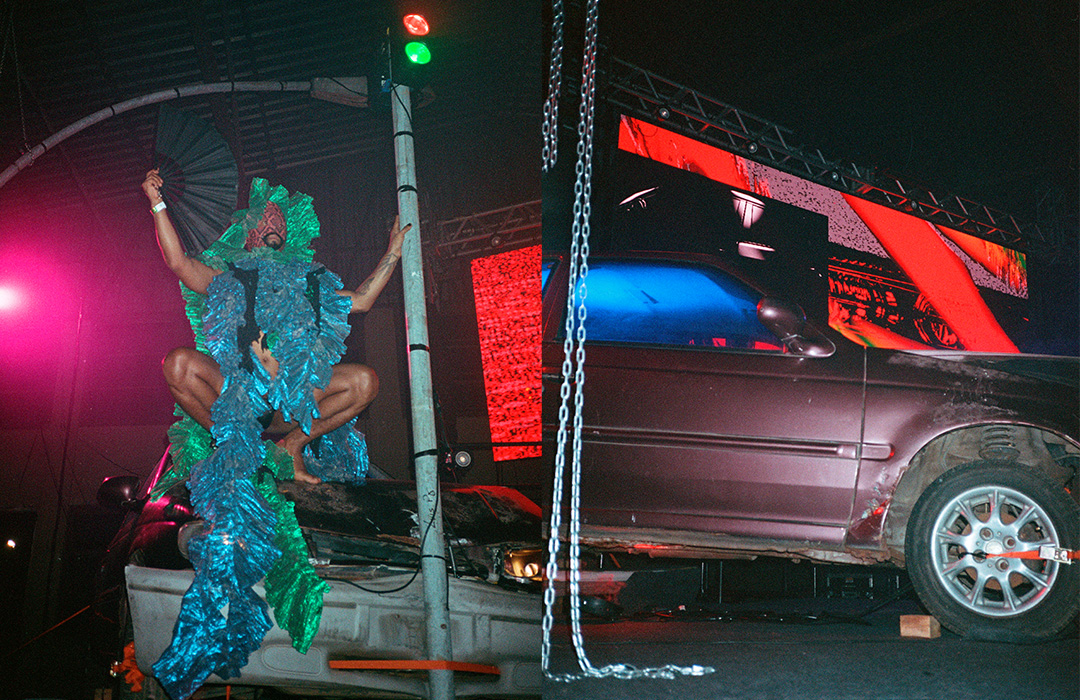 “I’ve lost control. I’ve lost control again” (Grace Jones). Para a edição de dez.23 da Mamba, como sempre, nossa intenção foi devolver nossa interpretação em relação ao tema da festa/a metáfora “100 limites”. Um carro batido em um semáforo, sob a luz de um poste urbano, transportava os presentes para um outro espaço imagético, transformando o galpão fabril onde a festa foi realizada. Um grande painel de LED fazia referência a um outdoor, onde essa “tragédia” era gravada e exibida e manipulada/distorcida em tempo real (como de costume na Mamba), ao mesmo tempo em que as luzes do carro, do semáforo e do poste também eram operadas ao vivo, bem como outros equipamentos distribuídos por todo o espaço, que reforçavam a narrativa que estava sendo contada por meio da cenografia ☆☆☆☆☆☆☆☆