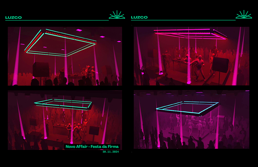 Para a edição de fim de ano da Novo Affair, voltamos com o palco 360° , mas dessa vez embaixo da Claraboia do Sky Room e de uma estrutura quadrangular com lâmpadas tubulares e ribaltas, que acompanhavam as performances por todos os lados